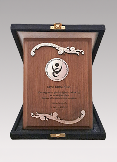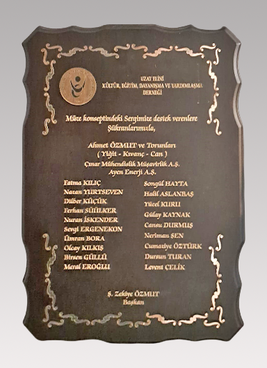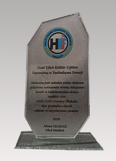 2020 yılında Halit Fahri Ozansoy İlkokulu’na yaptığımız destek ve yardımlar sonrasında Derneğimize verilen teşekkür plaketi.